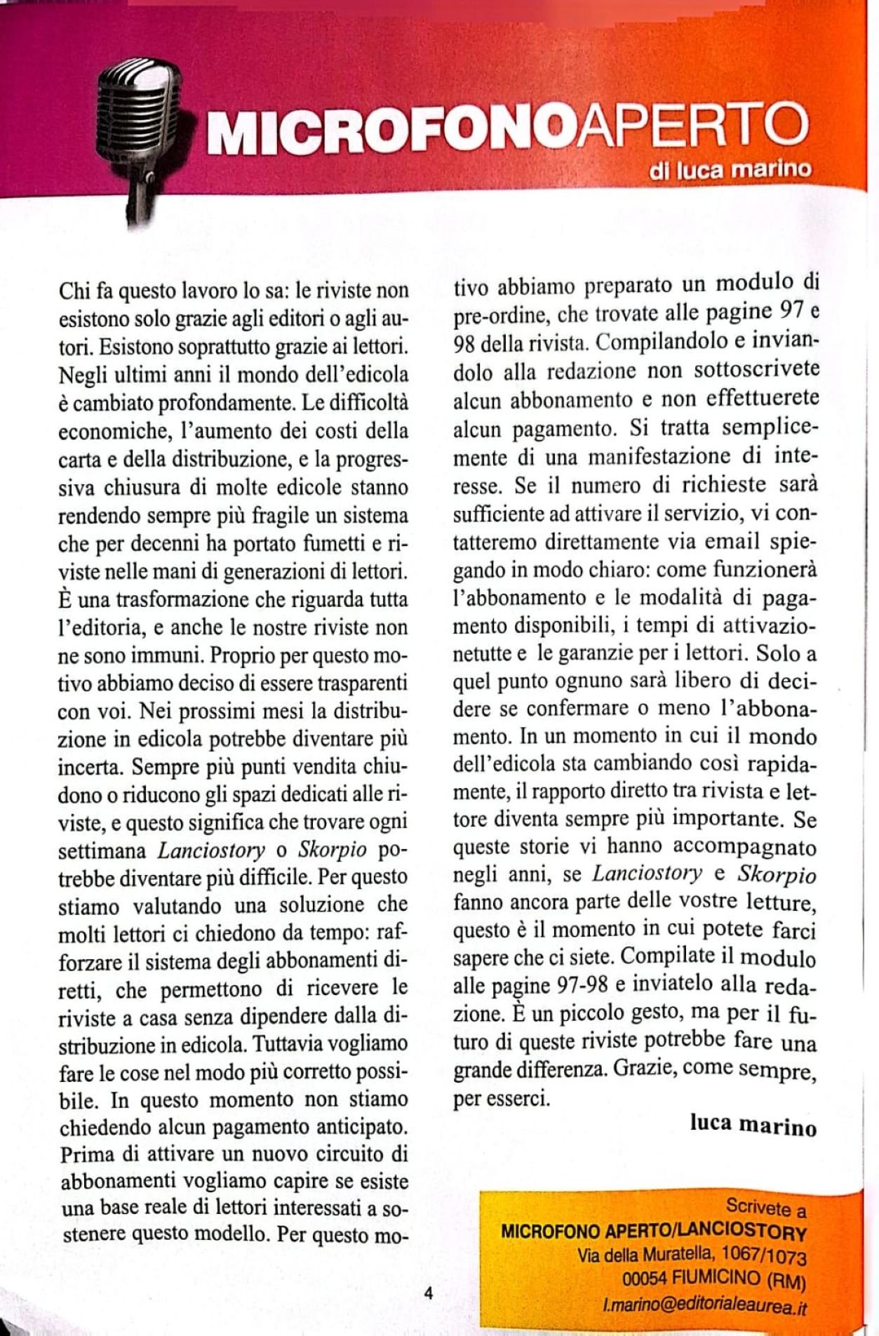 Abbonamenti diretti alle pubblicazioni Lanciostory e Skorpio della casa editrice Aurea S.r.l. baipassando il canale delle edicole.